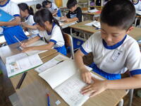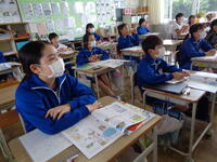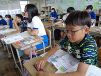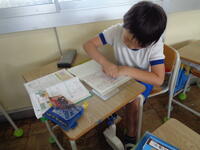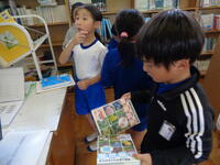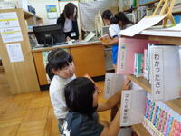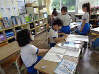 2年生 国語科 学校司書さんと一緒に、本の貸し出しを行いました。