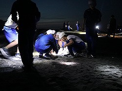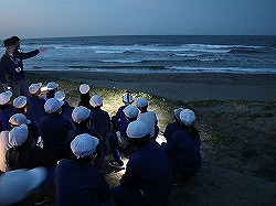 ナイトハイクでは、森林の間を抜け、海岸まで歩きました。海岸で、夢中で貝殻やカニを探していました。