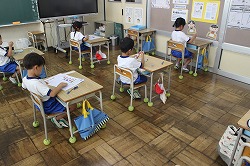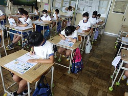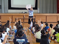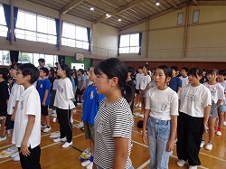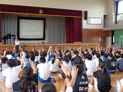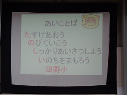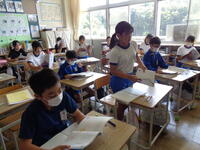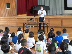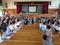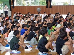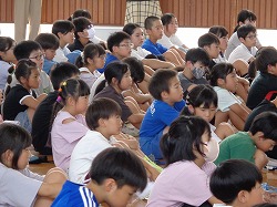校長先生より、1学期をふりかえり、「たのしい」田野小の合い言葉(た:たすけあおう、の:のびていこう、し:しっかりあいさつしよう、い:いのちをまもろう)についてのお話がありました。よくできていたところ、さらにのばしていけるといいところなどについて、みんなで確認しました。また、夏休みは自由な時間を自分で目標を決め、計画的に、安全に過ごし、2学期また会えることを楽しみにしていることを伝えました。