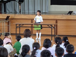 児童代表の発表がありました。2学期にがんばりたいことなどを、しっかりと発表していました。