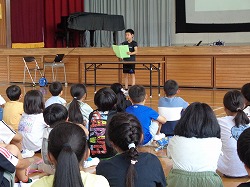 2名の代表児童が、1学期がんばったことや夏休みや今後に向けてがんばりたいことについて、堂々と発表しました。