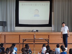 学習指導主任と児童指導主任から、夏休みの振り返りと2学期に向けた話がありました。