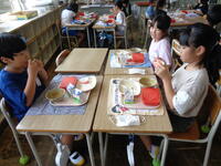 2学期最初の給食はカレーでした。「おいしい」の声があがり、もりもり食べている児童がたくさんありました。