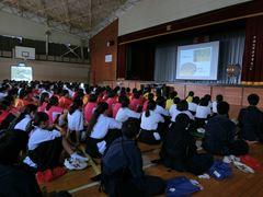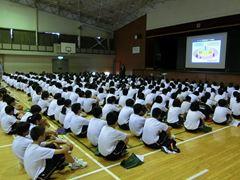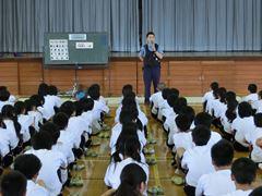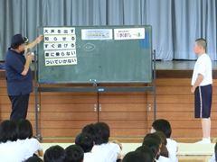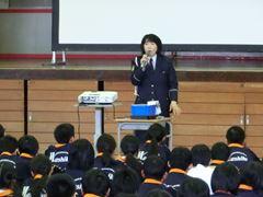 まずはじめに、交通指導員の方からお話をいただきました。続いて、本校の実態に即した指導員さん自作のDVDを視聴しました。