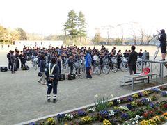 学校下の駐車場や学校下の道路での乗降は、生徒の登下校と重なり、危険を伴います。ご利用はお控えください。(けが等で歩行困難な場合は、昇降口前まで送迎可能です)