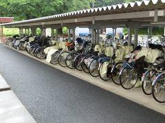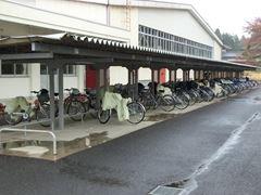 自転車置き場に、雨合羽が整然と並んでいます。