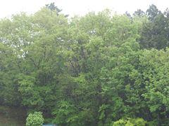 雨の中、木々も徐々に葉を出し始めました。