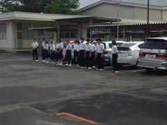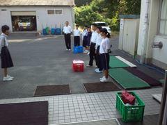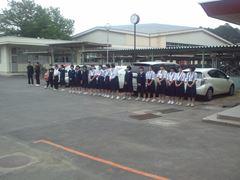 今週のあいさつ当番は女子ソフトテニス部です。大きな声であいさつができていました。