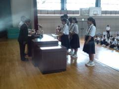 本日は平成27年度の修了式を行いました。各学年代表の生徒が修了証書を受け取りました。