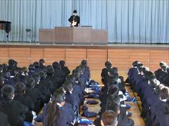 修了式後には、進路指導主事から春休みの過ごし方についての話がありました。有意義な春休みにしてほしいと思います。