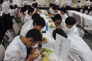 クラス別の見学を終え、メルパルクにてバイキング形式の昼食をとっています。メニューはそれぞれですが、写真は彩りがきれいなある生徒のものです。食べ終わりましたら、新幹線にて東京駅に向かいます。