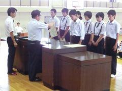 その前に、先日行われた郡市総体陸上競技大会の表彰を行いました。