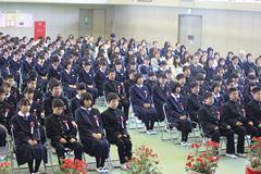 その後、先生方からお言葉をいただいた後、全校生徒で校歌を歌いました。