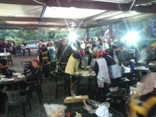 ツインリンクもてぎは雨が上がりました。昼食作りが始まりました。