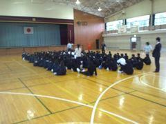 今週は行事が多く、事前指導も行われています。朝は、体育館で1年生が集会を行っていました。