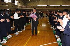 続いて離任式。3月いっぱいで益子中学校を去られた先生方がお見えになりました。