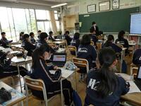 理科では実験が行われていました。既習事項の気体の集め方について、注意点を確認しながら授業が行われていました。