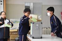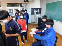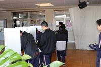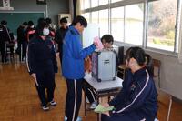 生徒会長候補者10名の中から会長1名、次点者1名(副会長)、生徒会副会長候補者8名の中から副会長1名を選ぶ投票を昼休みに行いました。実際の選挙で使用する記載台や投票箱を町からお借りし、実際の雰囲気に近づけて実施しました。放課後に開票し、明日の昼の放送で発表します。