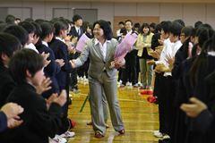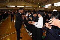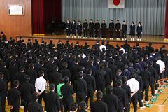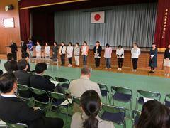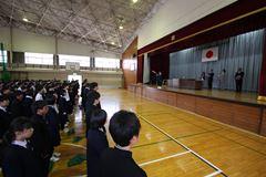 その後、先生方からお言葉をいただいた後、全校生徒で校歌を歌いました。