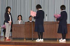 続いて離任式。3月いっぱいで益子中学校を去られた先生方がお見えになりました。