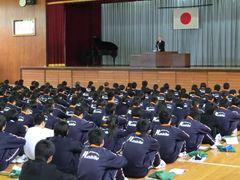 記念講演としてとして、本校卒業生の話を聞きました。最後に校歌を斉唱して記念日を祝いました。