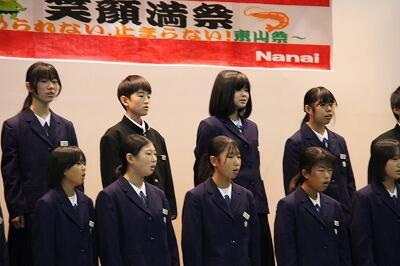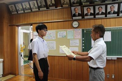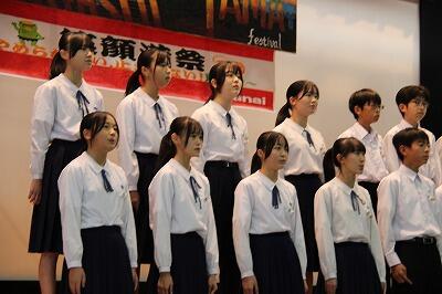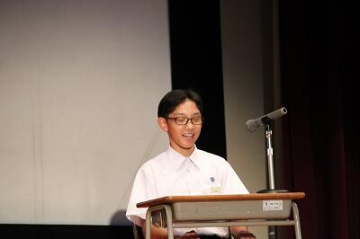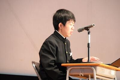 午前は発表部門として、①少年の主張、②英語スピーチ、③合唱コンクール、④吹奏楽部演奏が行われました。