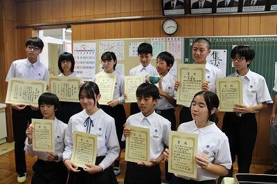 郡市新人各種大会、芳賀地区音楽祭の表彰者を表彰いたしました。おめでとうございます!