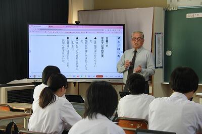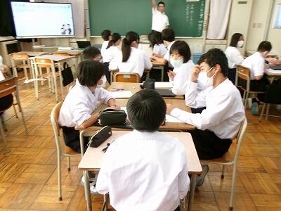 3年生の国語の授業では、「ビブリオバトル」に向けて準備を進めています。ビブリオバトルとは、生徒が発表者として好きな本を5分間で紹介し、参加者全員で「一番読みたくなった本」を投票で決める「知的書評合戦」です。簡単なディスカッションも行い、「本を通して人を知る、人を通して本を知る」ことを目的としたゲーム感覚のイベントです。今日は学校司書の舩橋先生からその目的と進め方の説明を受け、生徒は「ビブリオバトル」の動画を観た後、自分のおすすめの本を選んで読んでいました。どんな「ビブリオバトル」になるか、楽しみです!