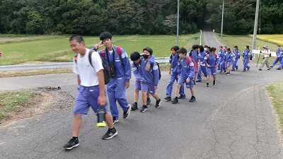 今回は、亀岡八幡宮、小宅古墳群、太平山、安善寺、北運動公園を散策しました。約13kmの行程でしたが、生徒たちは元気いっぱいに過ごし、それぞれの場所を興味津々で見学していました。地域の方から各所の歴史についてお話も伺うことができ、充実した活動となりました。