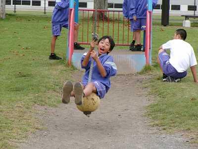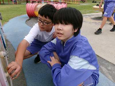 テストが午前中で終わった後の昼休みの様子をお伝えします。移動図書館「とっくん号」に本を借りに来る生徒や、外で元気に遊ぶ生徒など、みなそれぞれテストのことは忘れて元気に過ごしていました。