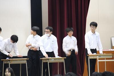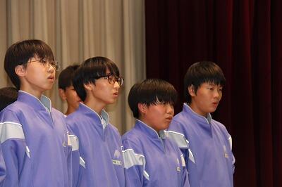 どの生徒も金賞目指し、真剣な面持ちでした。結果は、金賞3年2組「あなたへ~旅立ちに寄せるメッセージ~」、銀賞が3年1組「青い鳥」、銅賞が2年2組「時を超えて」となりました。