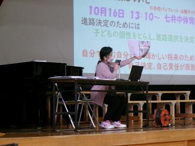 3年生にとってはいよいよ受験シーズンを迎えます。今日の進路説明会で得た情報を参考にしながら、自分の進路実現に向けて、これからもしっかり勉強に励んでほしいと思います。ご説明くださった県立高校の職員の皆様、大変お世話になり、ありがとうございました。また、ご参加下さった保護者の皆様、お子様の受験をサポートくださいますよう、お願いいたします。