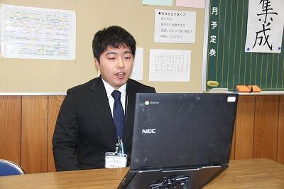 本日から、学校支援ボランティアとして宇都宮大学から1名の大学生が派遣され、全校生徒にリモートで紹介いたしました。
