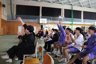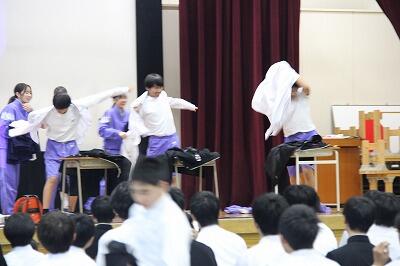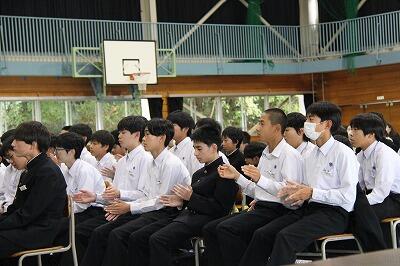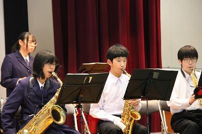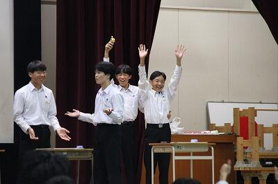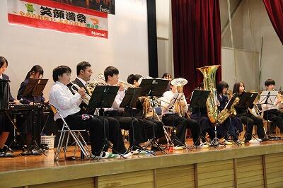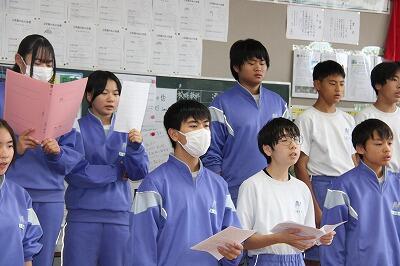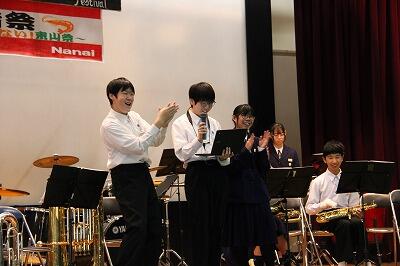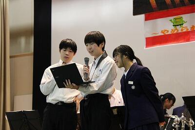 少年の主張、英語スピーチについては、各コンクールで発表した成果を改めて発揮しました。吹奏楽部演奏では、コンクールで演奏した曲だけでなく、名探偵コナンメインテーマ、Paradise Has No Border、宝島も演奏し、生徒も手拍子をして楽しみました。