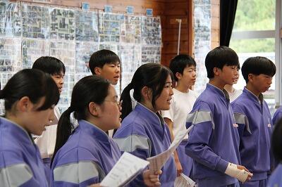 今日の合唱練習の様子です。1年生と3年生は、中間発表としてお互いに合唱を発表し合っていました。1年生にとって3年生の合唱を聴くことができたことは、今後の練習に大変参考になったことと思います。あと2日、本番が楽しみです!