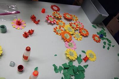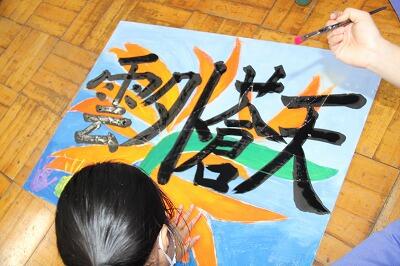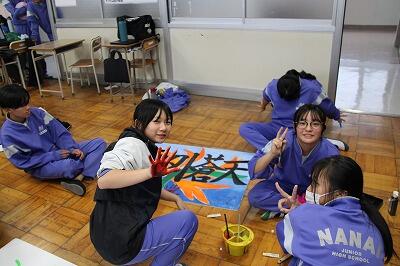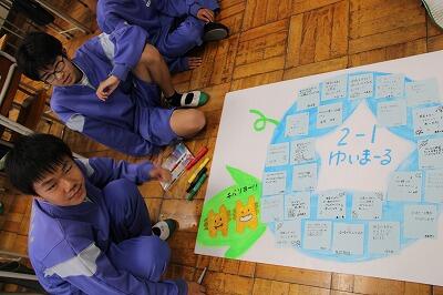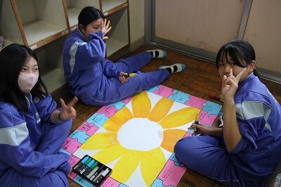 東山祭に向けて、放課後は各係に分かれて準備を進めています。早く終わった係では、シンボルの作成を行っていました