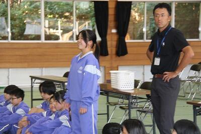 本日は益子消防署の方々にご指導いただき、避難訓練を実施いたしました。校内で火災があったことを想定して実施いたしましたが、生徒たちは先生の指示をよく聞き、無駄話もなく素早く避難することができ、益子消防署の方からもお褒めの言葉をいただきました。その後、煙体験と代表の生徒の消火体験を行いました。これからの時期、火を使うことが多くなり、火災の危険も増してくるそうです。ご家庭でも今日の避難訓練について話題を取り上げてくださり、火災予防に努めてくださいますようお願いします。
