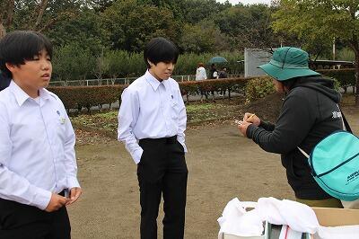 今日は、1年生の副会長立候補者が朝のあいさつ運動を行っていました。