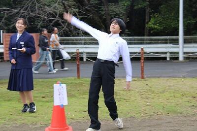 3年生の体育では、ソフトボールとサッカーに分かれて、選択制で競技を行っていました。撮影時に雨が強く降ってきて、数枚の写真しか撮ることができませんでしたが、生徒たちは雨が降ってきたことなど気にせずに、夢中になって競技していました。その後、担当教諭の指示により、競技を中断して教室に戻りました。次回の授業では多くの写真を撮影したいと思います。