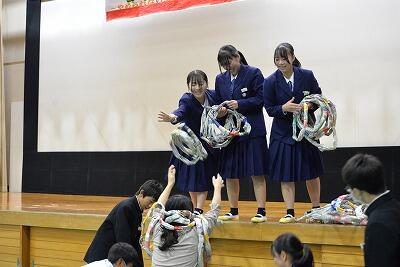 昨日は益子町駅伝競走大会が9時に益子南運動公園をスタートに、全5区間で行われました。あいにくの雨交じりの天候でしたが、本校からは全ての部活動が参加し、皆それぞれに全力でたすきをつなぎ、どの部も完走いたしました。競技後の恒例の抽選会では、お米やカップラーメン、食事券など、全ての参加選手に景品が用意され、当たった生徒は歓声を上げていました。雨の中の駅伝競走は大変だったと思いますが、チームのために全力でたすきをつなぐ姿には感動いたしました。大会の開催にあたってご尽力くださった益子町の関係者の皆様、そして送迎等でご協力くださった保護者の皆様、大変お世話になり、ありがとうございました。
