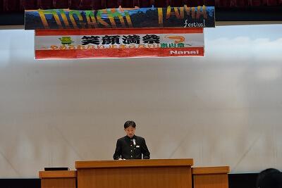 開会式では、生徒会長から本年度のスローガン「笑顔満祭 ~やめられない 止まらない 東山祭~」に込めた思いが述べられました。各クラスのシンボル披露では、益子町ゆるキャラ「マシコット」が華を添えてくれました。