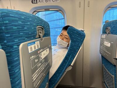 トランプ、おしゃべり、景色を堪能(天気が悪く、残念ながら、富士山は見られませんでした)ただいま安倍川を越えました。