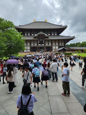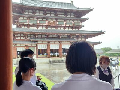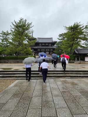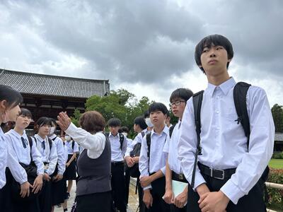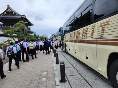 修学旅行 法隆寺を出発し宿舎に向かいます