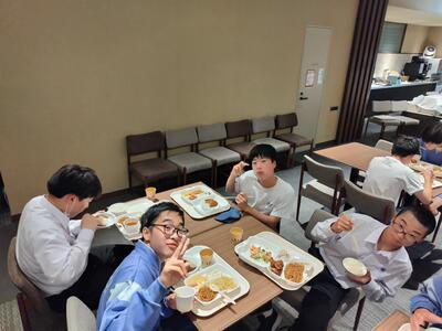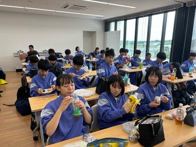 朝ごはんを食べている生徒もいます。今日一日頑張るエネルギーチャージ中です!