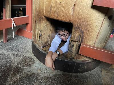 事前の調べ学習で調べた七不思議を見学して周っています。