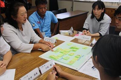 今回の学校運営協議会は、「地域との絆づくり~地域のために自分たちができることを考えよう~」をテーマに、協議委員さんと各学級の代表生徒、教職員がグループごとに話合いの場を持ちました。代表生徒からは、各クラスで話し合った意見をもとに、地域に貢献できることや地域と連携して活動できることなど、建設的な意見が活発に発表され、今後の活動に期待がもてる話合いとなりました。今日の話合いをもとに、学校運営協議会、PTA執行部の方々と連携をとりながら、「地域とともにある学校づくり」を進めていきたいと思います。