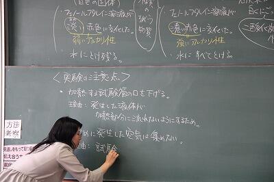 T「炭酸水素ナトリウムを加熱すると何ができますか?」 S「二酸化炭素と水と違う物質ができます」