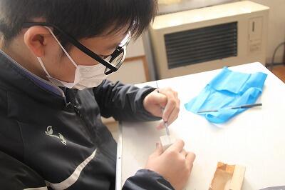 3年1組の美術の授業では、刻印作りを行っていました。みな集中して作品を作っていました。