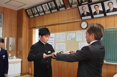 朝会にて表彰を行いました。今回は大変多くの生徒が体育的、文化的分野にて受賞されました。今回表彰できなかった生徒は次回の表彰式で表彰いたします。受賞された生徒の皆さん、おめでとうございます!