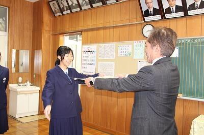 益子町青少年健全育成大会の席上で、本校生徒が「家庭の日〜家族のふれあい・我が家自慢〜三行詩コンクール」で表彰されました。